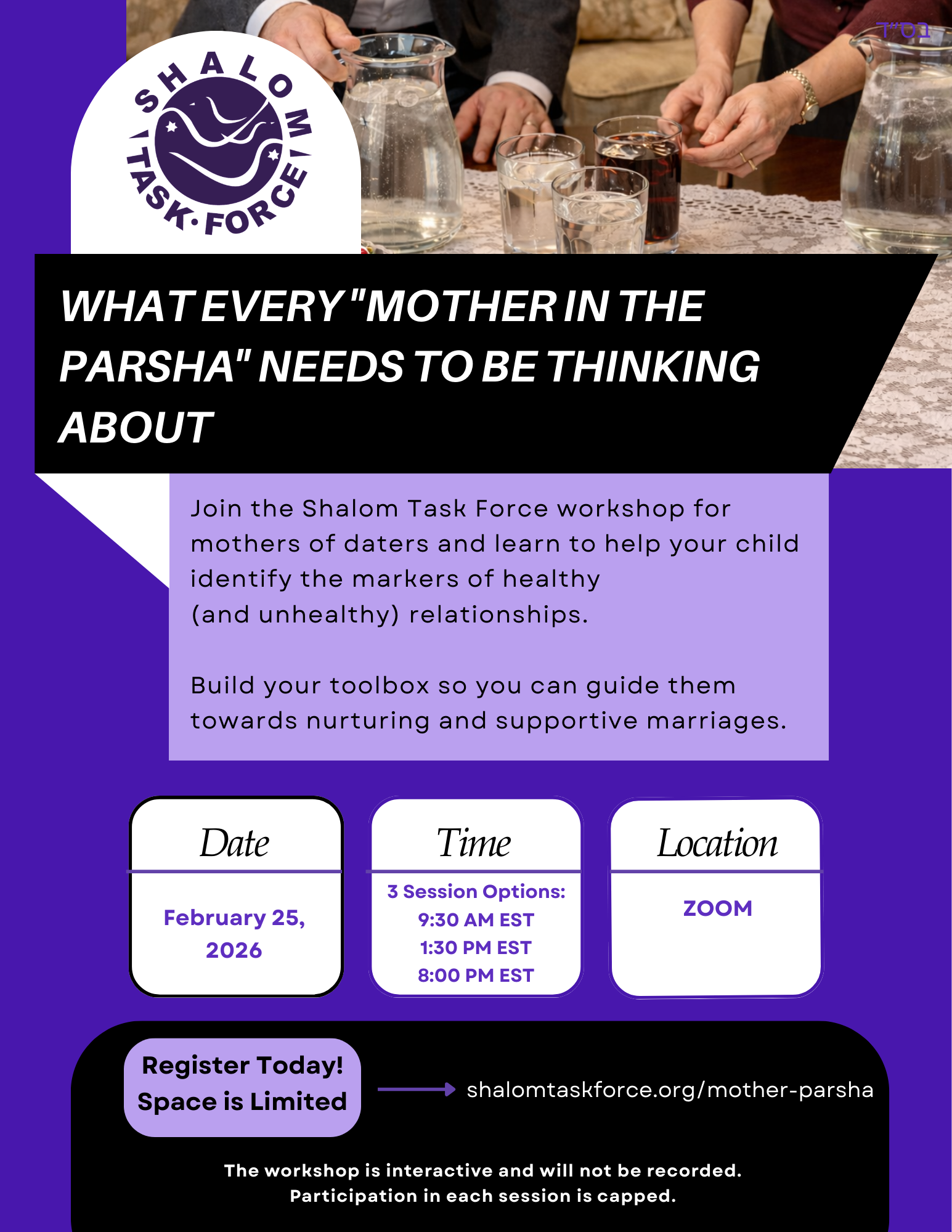 Join Shalom Task Force for a workshop for parents of daters and learn how to help your child identify the markers of healthy (and unhealthy) relationships.