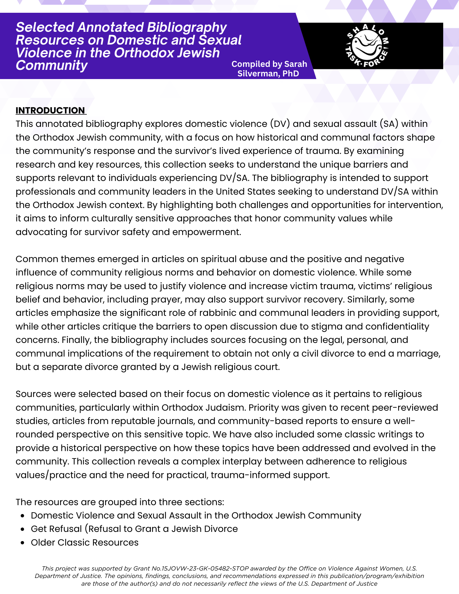 Shalom Task Force is available to present to grantees, potential grantees, or partners at OVW and non OVW conferences, institutes, roundtables, or other presentations around our extensive work engaging insular Jewish communities around the topics of domestic violence, dating violence, sexual assault and stalking.